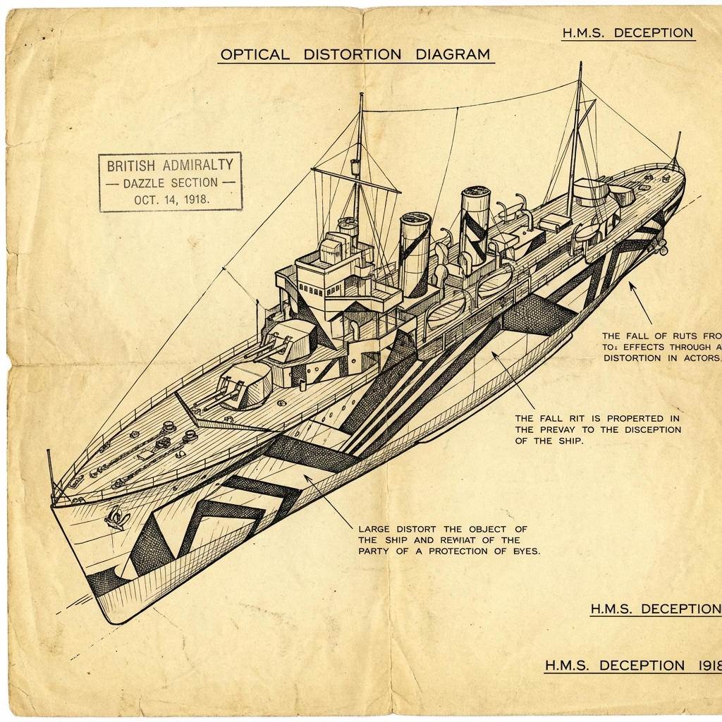 British naval artist Norman Wilkinson realized that since you couldn't hide a massive ship on the open ocean, you had to change the question. Instead of concealment, he chose confusion.